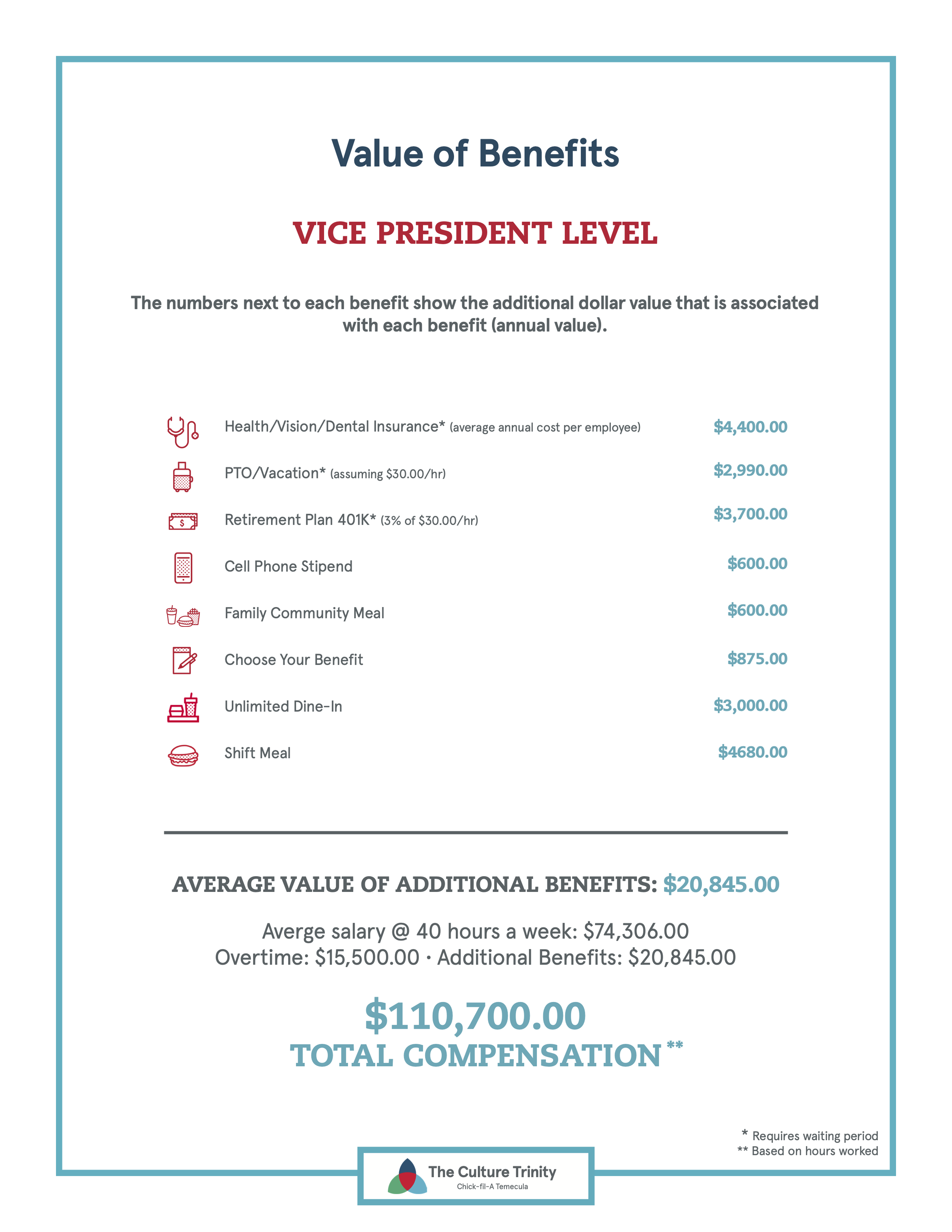 Unlimited Family Dine-In meals (eligible at the Vice President level)